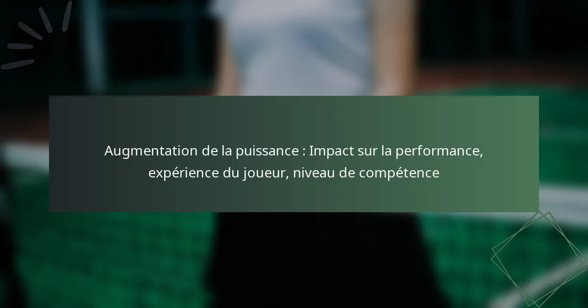 La puissance accrue améliore considérablement la performance dans divers domaines, y compris les jeux et le sport. Cette amélioration peut être mesurée à travers divers indicateurs de performance, conduisant à de meilleures expériences pour les joueurs et au développement de leurs compétences.